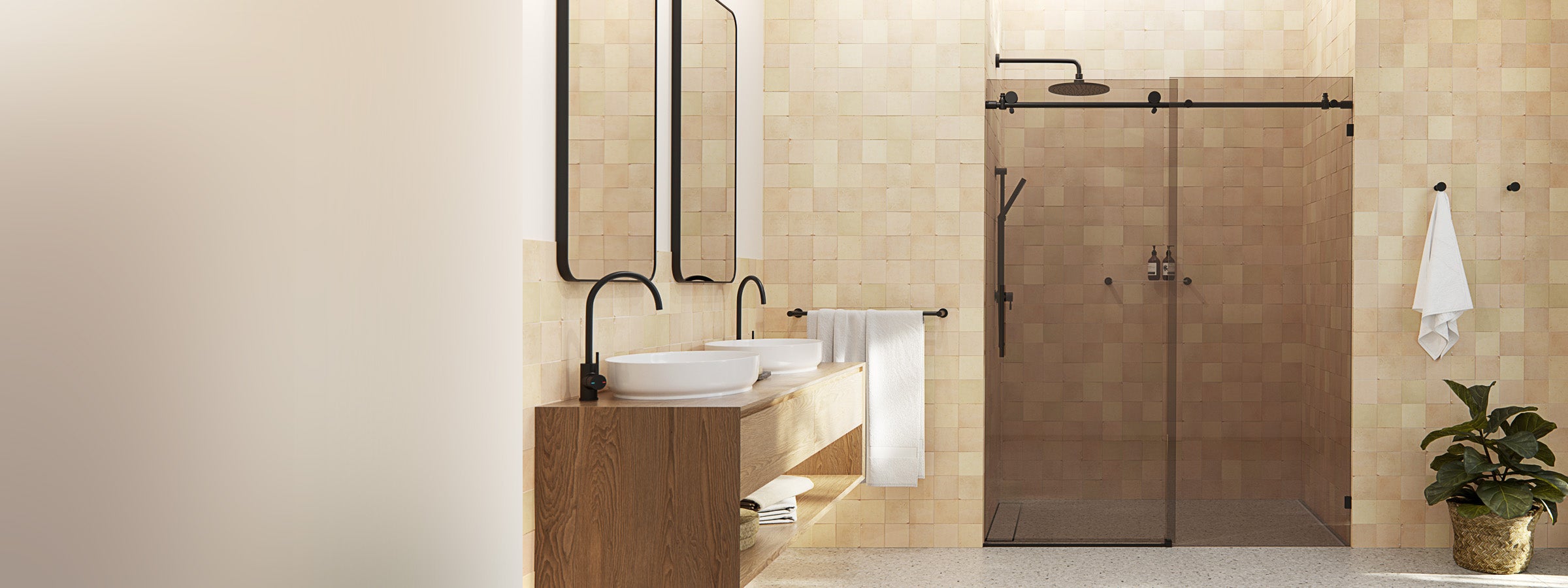 Minimalist frameless fixed shower panels for walk-in showers and wet rooms. Create an open, modern layout with durable tempered glass and simple installation.