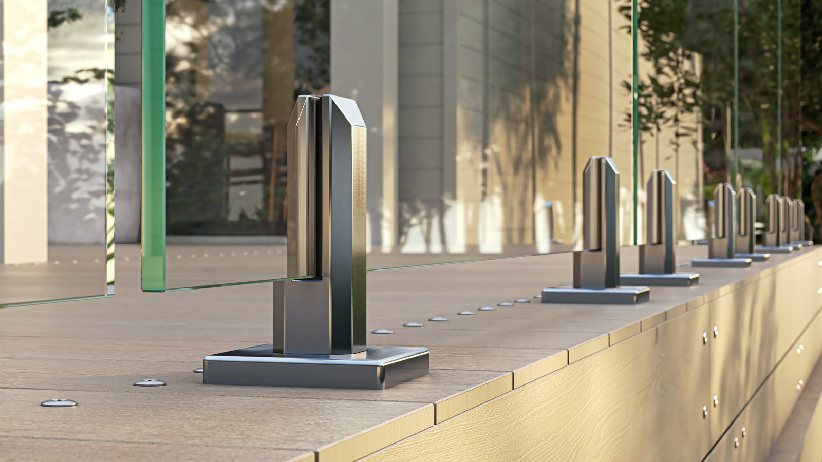 Low-profile base shoe railing systems that secure glass at the floor line for a seamless, modern appearance. Perfect for unobstructed views and clean architectural designs.