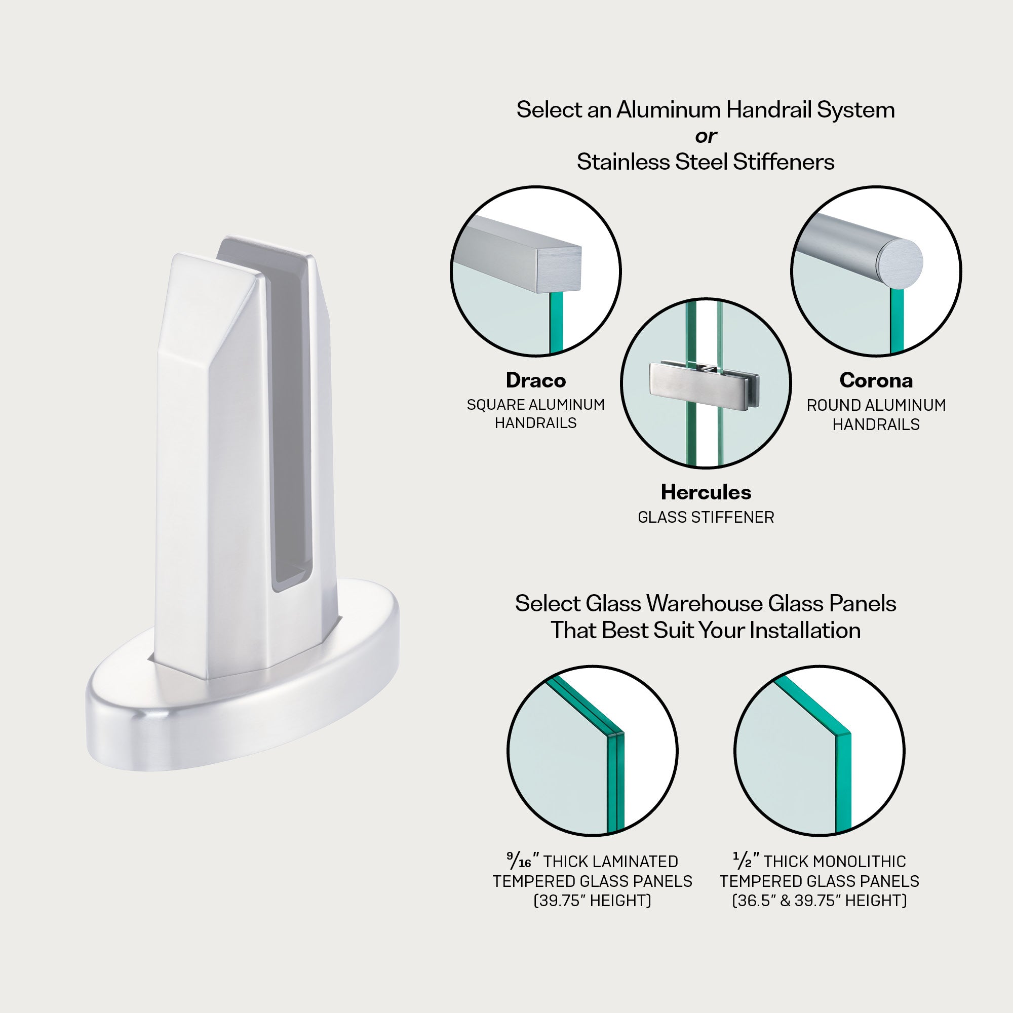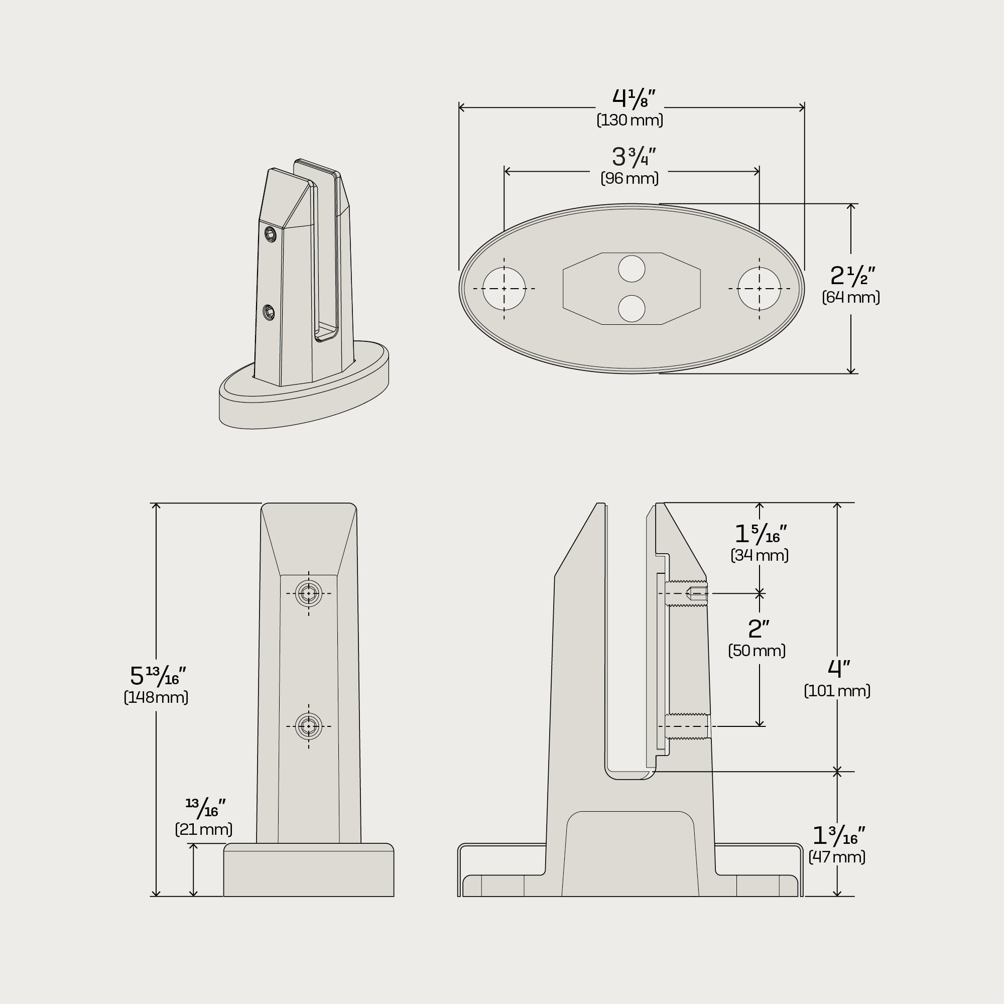 The Canis is an oval baseplate spigot designed with a slimline profile to achieve the ultimate frameless look. It is designed for surface mounted applications and engineered to US glass railing standards. Made from the highest grade 2205 Duplex Stainless Steel, it provides the best protection for outdoor applications.