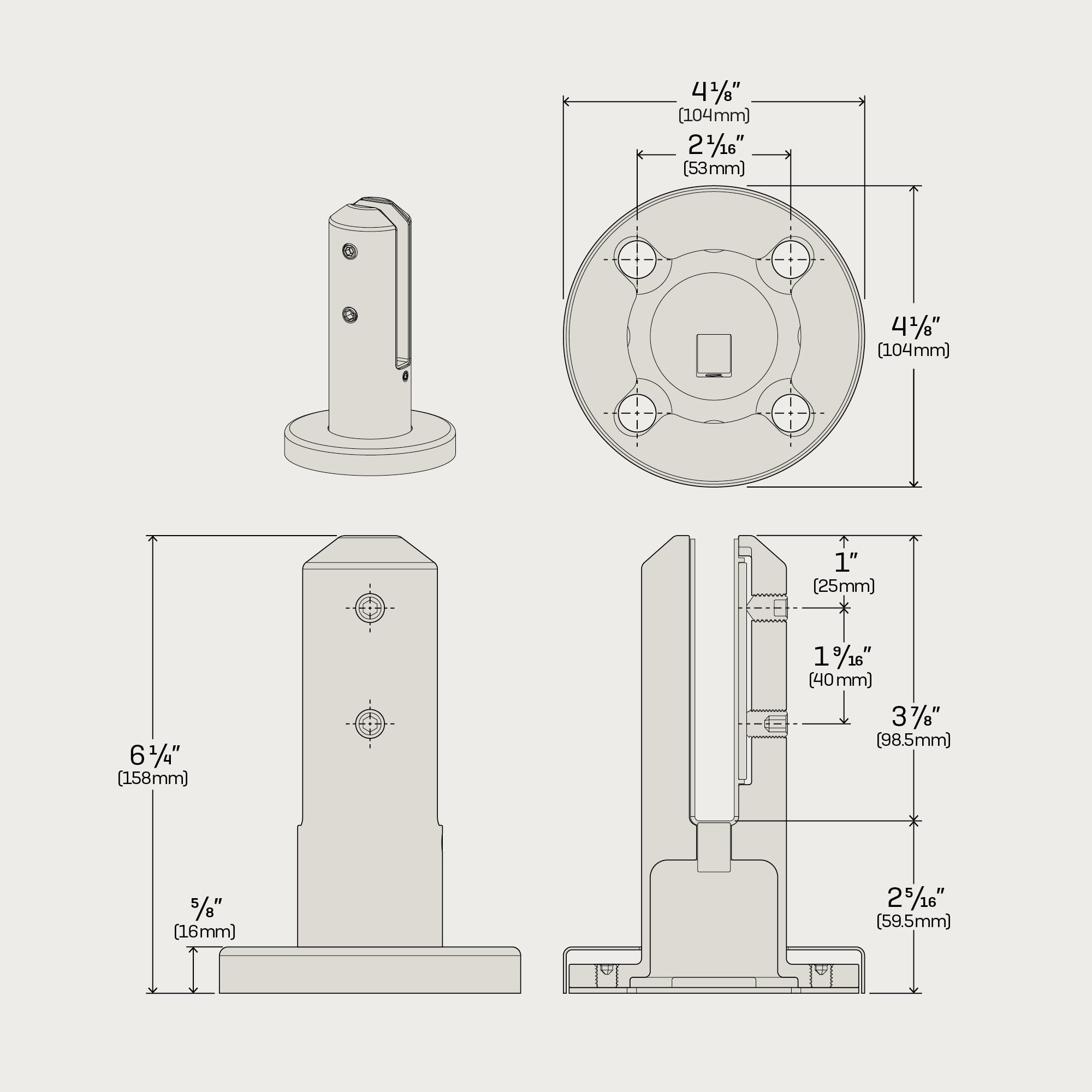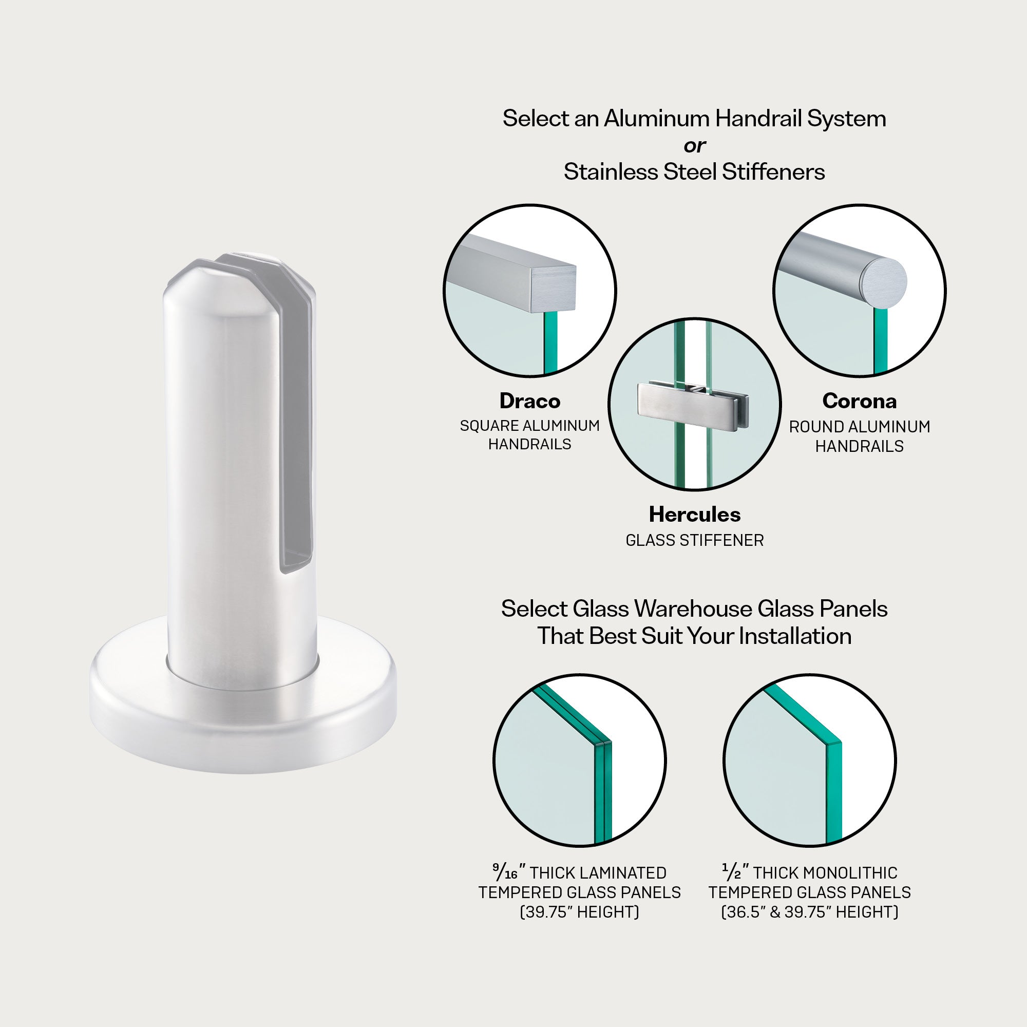The Dorado is a round baseplate spigot designed with a circular, clean modern appearance. It is designed for surface mounted applications to achieve a fully frameless glass aesthetic, while being engineered to US glass railing standards. Made from the highest grade 2205 Duplex Stainless Steel, it provides the best protection for outdoor applications.